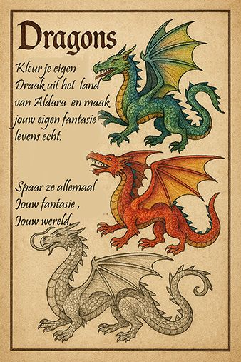 Kleur je eigen draak naar fantasie en gevoel , iedere draak zijn eigen identiteit.